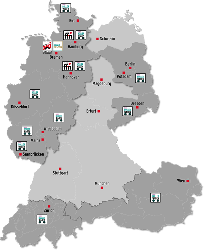 Und ganz nebenbei: Der Shooting-Star RADIO BOLLERWAGEN ist Deutschlands erfolgreichster Partysender. Er gehört zu den TOP5 der meistgenutzten Online Audio Programme in Deutschland. Neben der DAB+ Verbreitung in Nordrhein-Westfalen, Hessen, Hamburg, Flensburg und auf Sylt, sowie in Dresden, Leipzig, Chemnitz und Freiberg ist der Sender nun auch in seinem „Mutterland“ Niedersachsen zu empfangen.